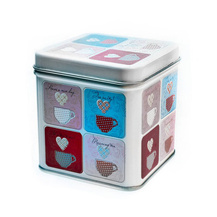Metalowa puszka na herbatę - różowo-żółty wzór