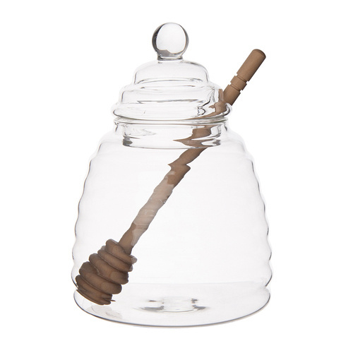 - Uroczy szklany pojemnik w kształcie baryłki z drewnianym nabierakiem, dzięki któremu w atrakcyjny i wygodny sposób podasz miód na stół.