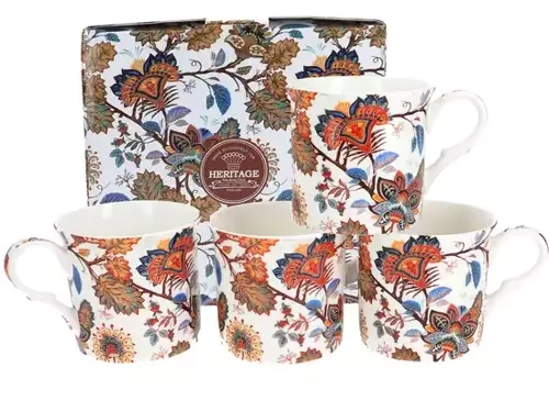 Komplet czterech porcelanowych kubków w ozdobnym pudełku.