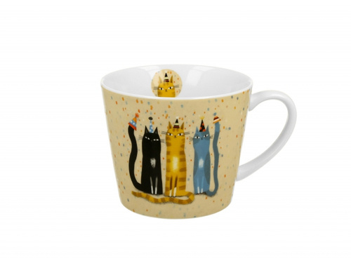 - Porcelanowy kubek zdobiony motywem kotów na przyjęciu.